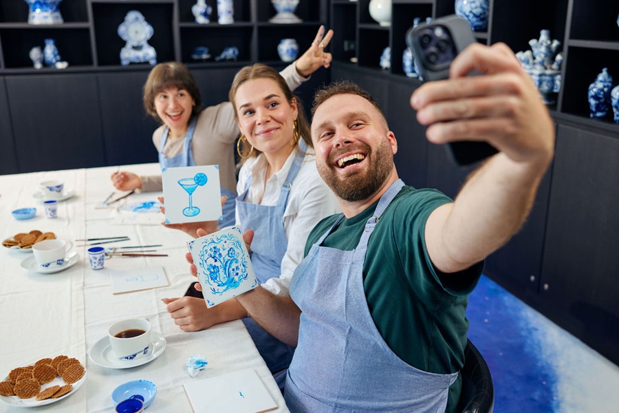 Under the guidance of a skilled local artist, you will master the traditional craft of painting Delft tiles in this practical class. Since the 17th century, Delftware has been a symbol of Dutch culture, renowned for its exquisite blue-and-white patterns that draw inspiration from everyday life, nature, and classical motifs. You now have the opportunity to creatively and uniquely bring this heritage to life.